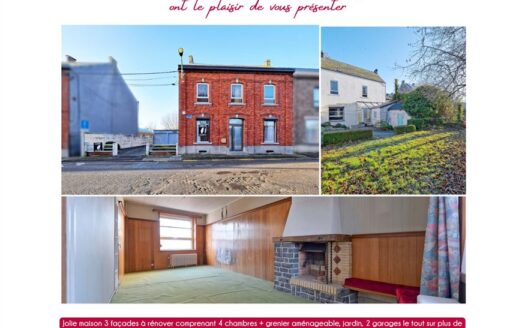 Une maison à rafraîchir mais chaleureuse et accessible, sur laquelle cela vaut la peine de se pencher. Cette maison 3 façades, idéalement située à l’angle de 2 rues, dégage une atmosphère rassurante et conviviale, avec une petite cour à l’avant, un garage et une belle luminosité. Ici, tout invite à imaginer une vie simple, pratique et confortable. Composition : hall d’entrée accueillant, WC indépendant, ...